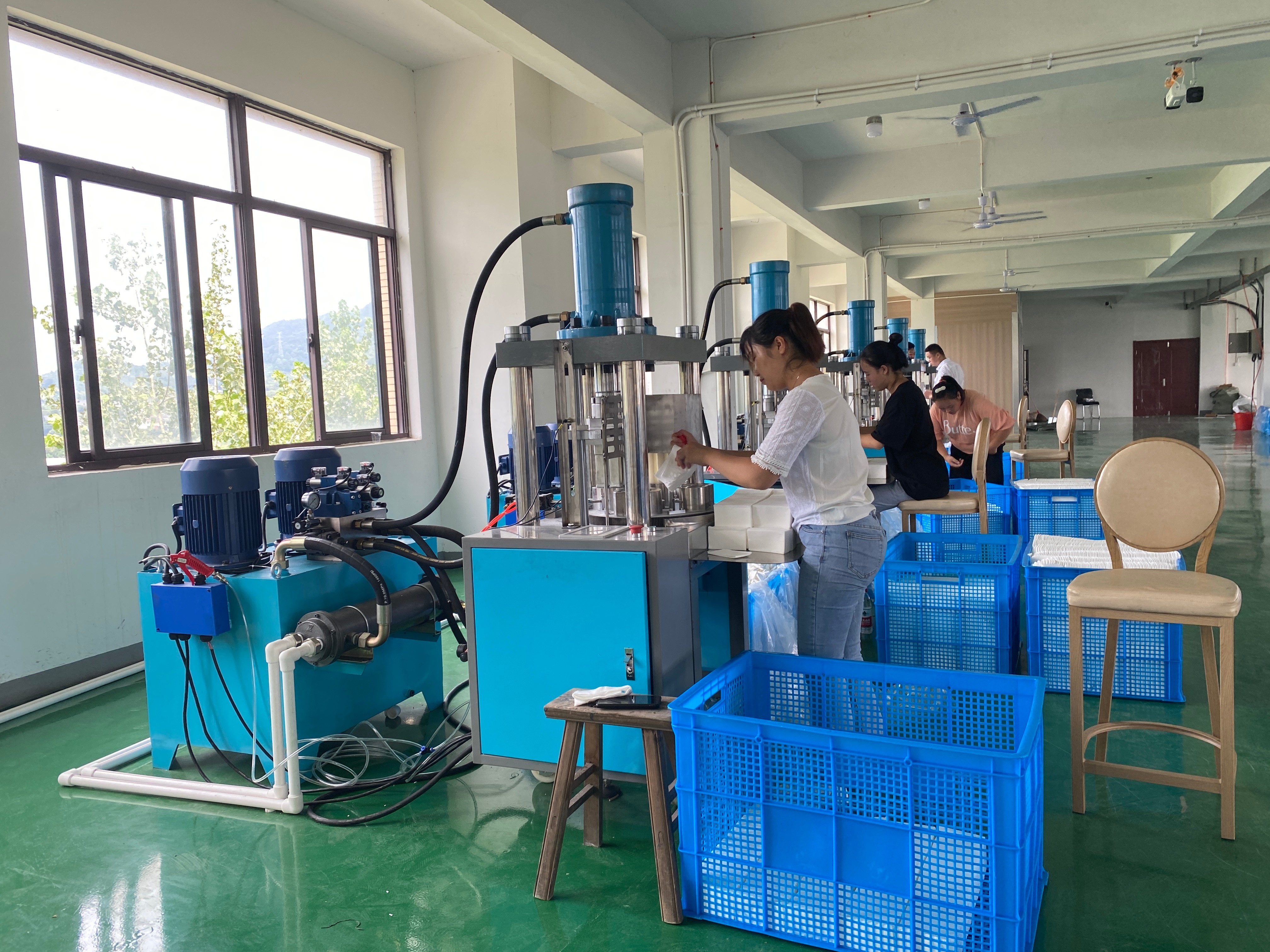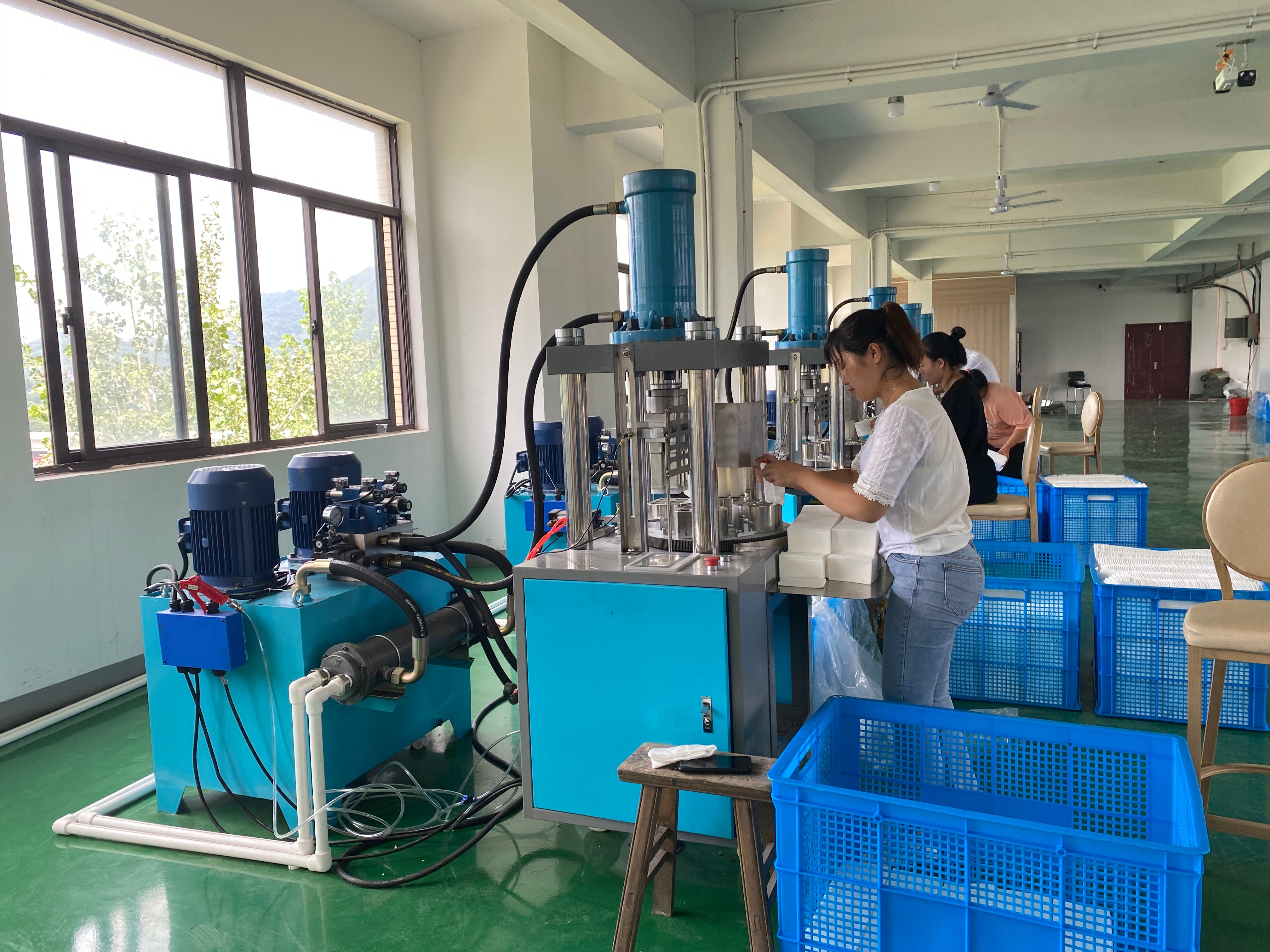 1. 配液壓機(含液壓油),兩個(gè)紅(hóng)外線感應安全裝置,上(shàng)下(xià)銅套,6孔模具一(yī)套(孔徑45mm)。